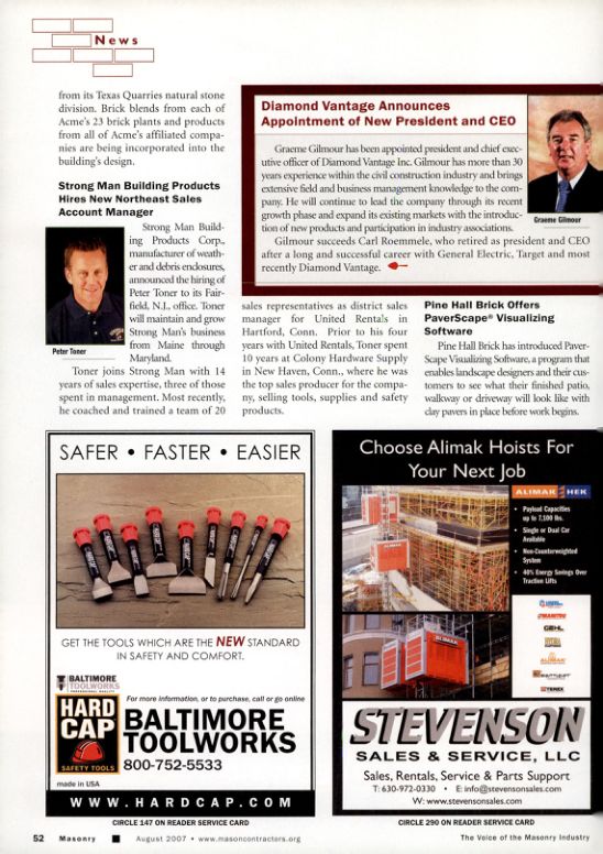 Graeme Gilmour has been appointed president and chief executive officer of Diamond Vantage Inc. Gilmour has more than 30 years experience within the civil construction industry and brings extensive field and business management knowledge to the company. He will continue to lead the company through its recent growth phase and expand its existing markets with the introduction of new products and participation in industry associations.