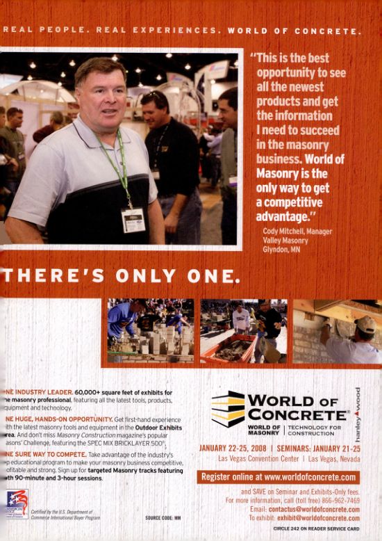 "This is the best opportunity to see all the newest products and get the information I need to succeed in the masonry business. World of Masonry is the only way to get a competitive advantage."