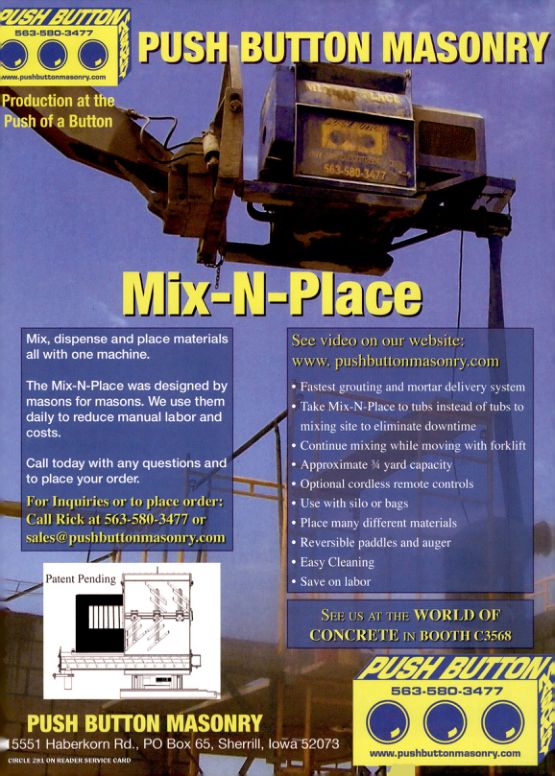 For Inquiries or to place order: Call Rick at 563-580-3477 or sales@pushbuttonmasonry.com