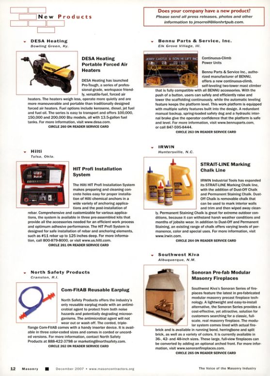 Southwest Kiva's Sonoran Series of fireplaces feature the latest in pre-fabricated modular masonry precast fireplace technology. A lightweight and easy-to-install alternative, the Sonoran Series provides a cost-effective, yet attractive, solution for customers searching for a classic, full-scale, real masonry fireplace. The modular system comes lined with actual fire-brick and is available in running bond, herringbone and split brick, as well as a variety of colors. It is currently available in 36-, 42-and 48-inch sizes. These large, full-view fireplaces can be converted by adding an optional arched front. For more information, visit www.sonoranfireplaces.com.
