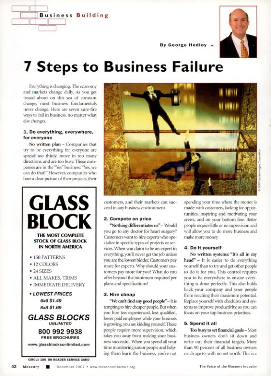 Everything is changing. The economy and markets change daily. As you get tossed about on this sea of constant change, most business fundamentals never change. Here are seven sure-fire ways to fail in business, no matter what else changes.