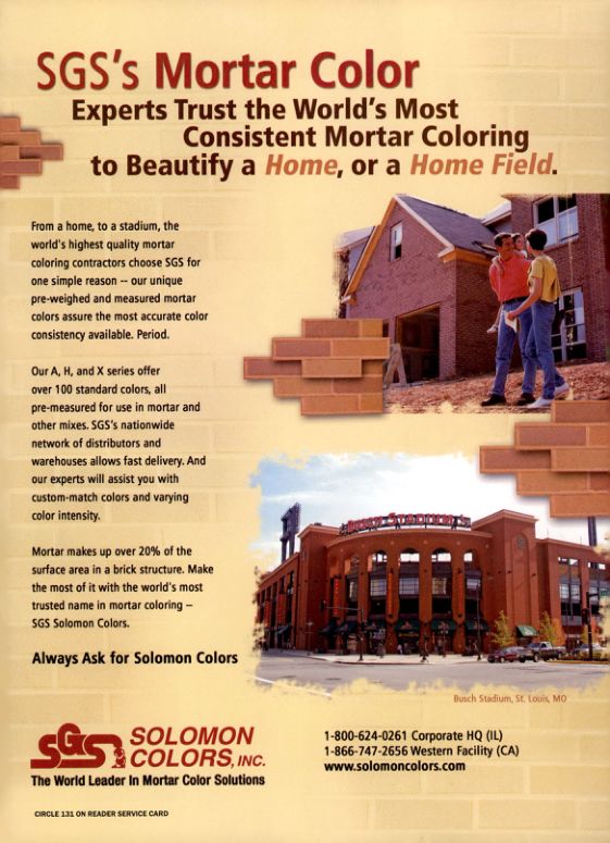 Mortar makes up over 20% of the surface area in a brick structure. Make the most of it with the world's most trusted name in mortar coloring SGS Solomon Colors.
