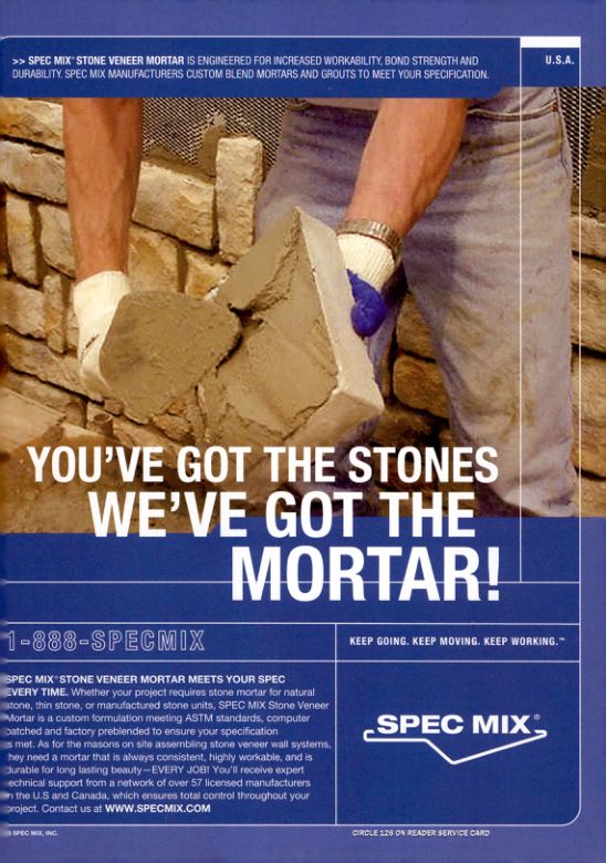 SPEC MIX STONE VENEER MORTAR MEETS YOUR SPEC EVERY TIME.