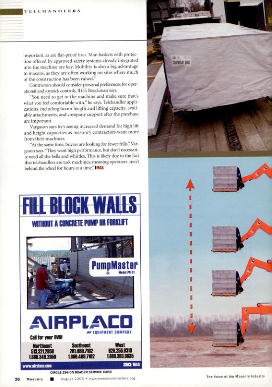 Vargason says he's seeing increased demand for high lift and height capacities as masonry contractors want more from their machines.