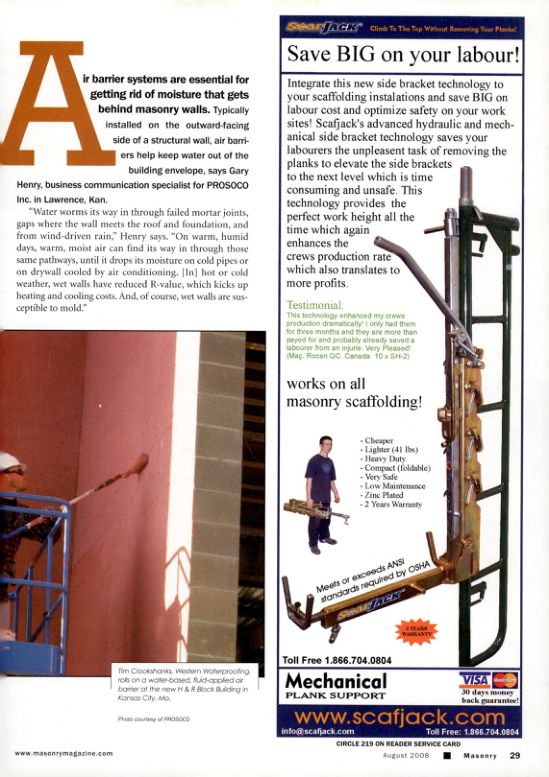 Air barrier systems are essential for getting rid of moisture that gets behind masonry walls. Typically installed on the outward-facing side of a structural wall, air barriers help keep water out of the building envelope, says Gary Henry, business communication specialist for PROSOCO Inc. in Lawrence, Kan.