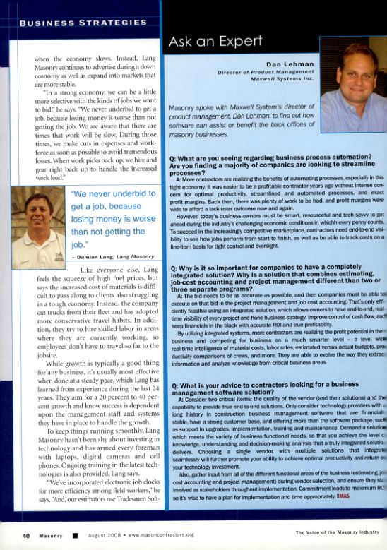 Masonry spoke with Maxwell System's director of product management, Dan Lehman, to find out how software can assist or benefit the back offices of masonry businesses.