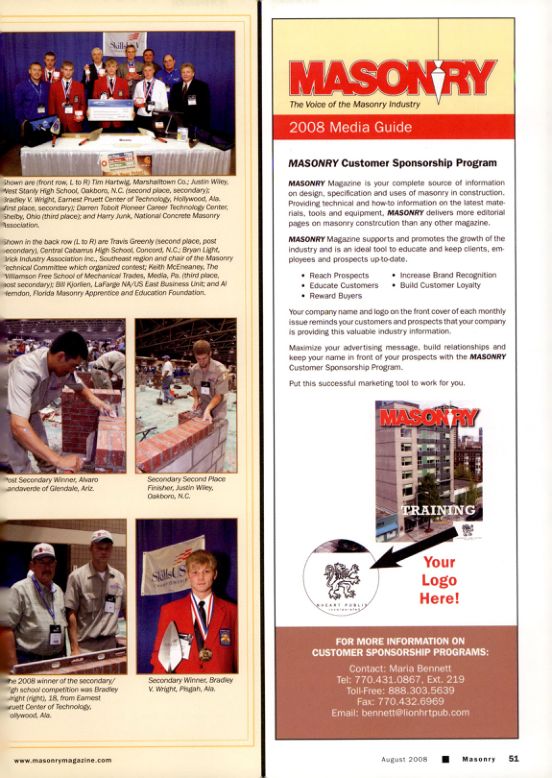 MASONRY Magazine is your complete source of information on design, specification and uses of masonry in construction. Providing technical and how-to information on the latest materials, tools and equipment, MASONRY delivers more editorial pages on masonry constrcution than any other magazine.