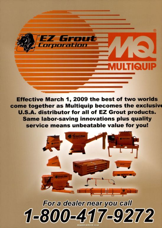 Effective March 1, 2009, the best of two worlds come together as Multiquip becomes the exclusive U.S.A. distributor for all of EZ Grout products. Same labor-saving innovations plus quality service means unbeatable value for you!