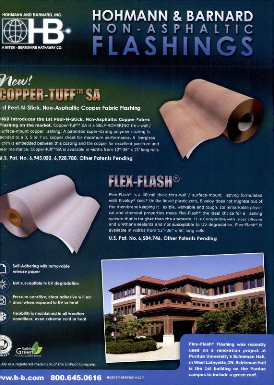Flex-Flash Flashing was recently used on a renovation project at Purdue University's Schleman Hall, in West Lafayette, IN. Schleman Hall is the 1st building on the Purdue campus to include a green roof.
