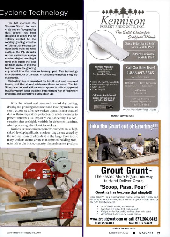 Controlling dust is important for health and environmental issues, and this shroud addresses those concerns. The IXL Shroud can be used with a vacuum system or with an approved bag if a vacuum is not available, thus reducing risk of respiratory problems and saving time during clean up.