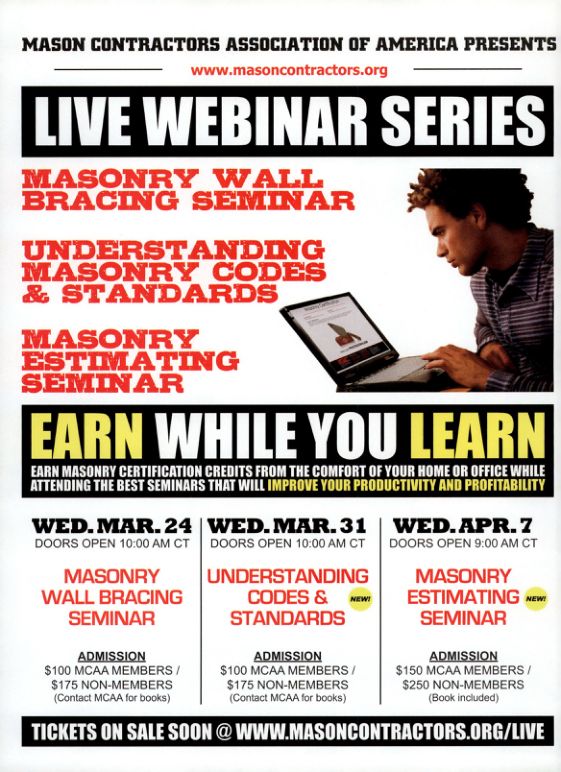 EARN MASONRY CERTIFICATION CREDITS FROM THE COMFORT OF YOUR HOME OR OFFICE WHILE ATTENDING THE BEST SEMINARS THAT WILL IMPROVE YOUR PRODUCTIVITY AND PROFITABILITY
