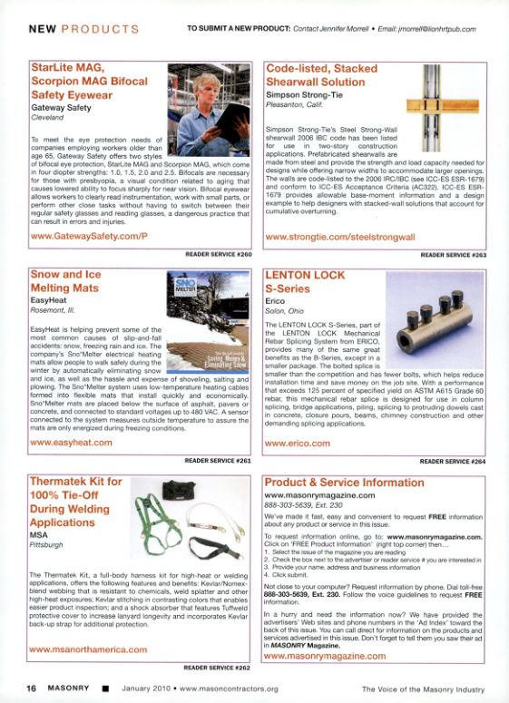 In a hurry and need the information now? We have provided the advertisers' Web sites and phone numbers in the 'Ad Index' toward the back of this issue. You can call direct for information on the products and services advertised in this issue. Don't forget to tell them you saw their ad in MASONRY Magazine.