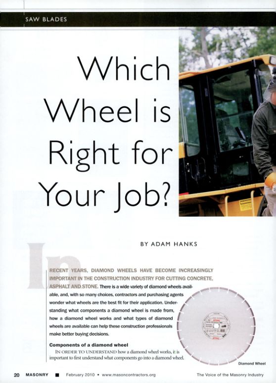 In recent years, diamond wheels have become increasingly important in the construction industry for cutting concrete, asphalt and stone. There is a wide variety of diamond wheels available, and, with so many choices, contractors and purchasing agents wonder what wheels are the best fit for their application. Understanding what components a diamond wheel is made from, how a diamond wheel works and what types of diamond wheels are available can help these construction professionals make better buying decisions.