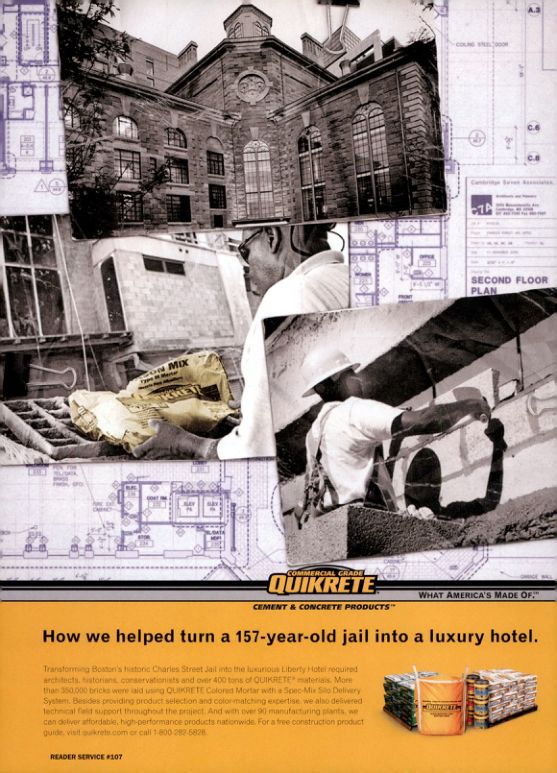 Transforming Boston's historic Charles Street Jail into the luxurious Liberty Hotel required architects, historians, conservationists and over 400 tons of QUIKRETE materials. More than 350,000 bricks were laid using QUIKRETE Colored Mortar with a Spec-Mix Silo Delivery System. Besides providing product selection and color-matching expertise, we also delivered technical field support throughout the project. And with over 90 manufacturing plants, we can deliver affordable, high-performance products nationwide. For a free construction product guide, visit quikrete.com or call 1-800-282-5828