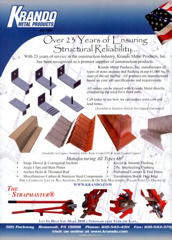 Krando Metal Products, Inc. manufactures all types of stone anchors and flashing in our 61,000 Sq. Ft. state-of-the-art facility. All products are manufactured based on your job specifications and requirements.