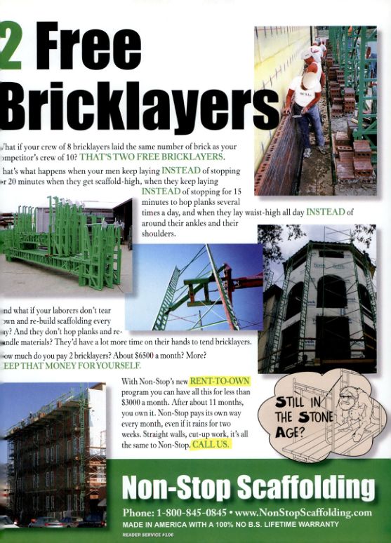 What if your crew of 8 bricklayers laid the same number of brick as your competitor's crew of 10? THAT'S TWO FREE BRICKLAYERS.