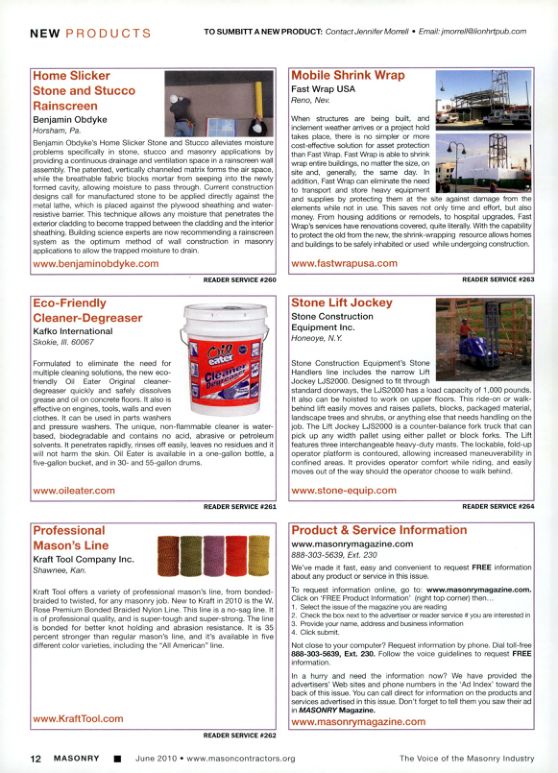 To request information online, go to: www.masonrymagazine.com. Click on 'FREE Product Information (right top corner) then...