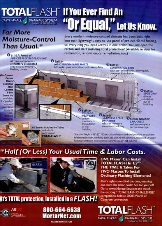 It's TOTAL protection, installed in a FLASH! ARCAT Sweets 800-664-6638 MortarNet.com READER SERVICE +148