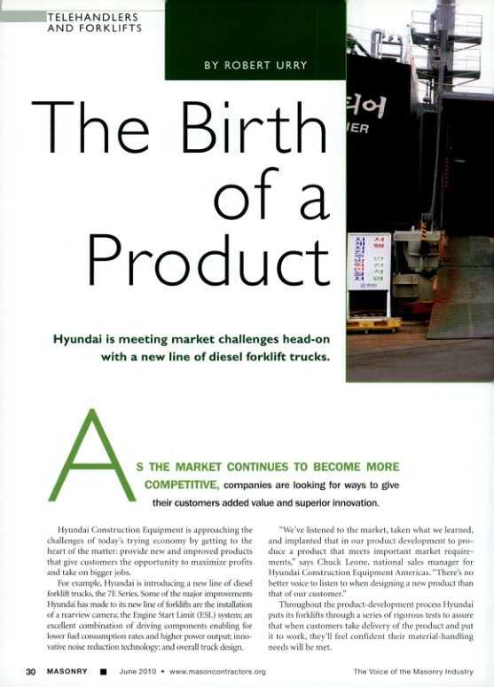 Throughout the product-development process Hyundai puts its forklifts through a series of rigorous tests to assure that when customers take delivery of the product and put it to work, they'll feel confident their material-handling needs will be met.