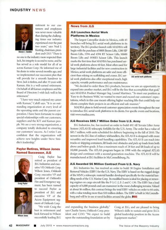 Paylor Retires, Wilson Jones Named Successor, JLG