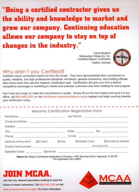 Return to: Mason Contractors Association of America, 1481 Merchant Drive, Algonquin, IL 60102