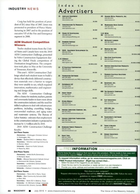 To request information online, go to: www.masonrymagazine.com. Click on 'FREE Product Information' (Right top corner) then...