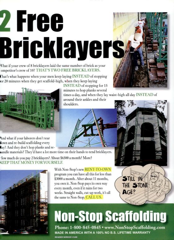 What if your crew of 8 bricklayers laid the same number of brick as your competitor's crew of 10? THAT'S TWO FREE BRICKLAYERS.