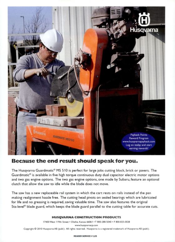The Husqvarna Guardmatic® MS 510 is perfect for large jobs cutting block, brick or pavers. The Guardmatic® is available in five high torque continuous duty dual capacitor electric motor options and two gas engine options. The two gas engine options, one made by Subaru, feature an optional clutch that allow the saw to idle while the blade does not move.