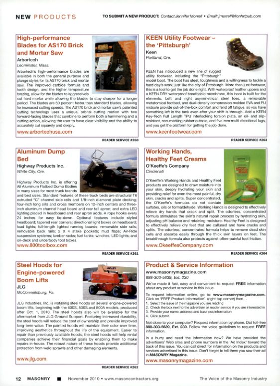 In a hurry and need the information now? We have provided the advertisers Web sites and phone numbers in the 'Ad Index' toward the back of this issue. You can call direct for information on the products and services advertised in this issue. Don't forget to tell them you saw their ad in MASONRY Magazine.
