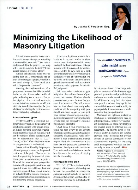 Juanita Ferguson is an Associate with the law firm of Bean, Kinney & Korman in Arlington, Va. She can be reached at jferguson@beankinney.com or 703-525-4000.