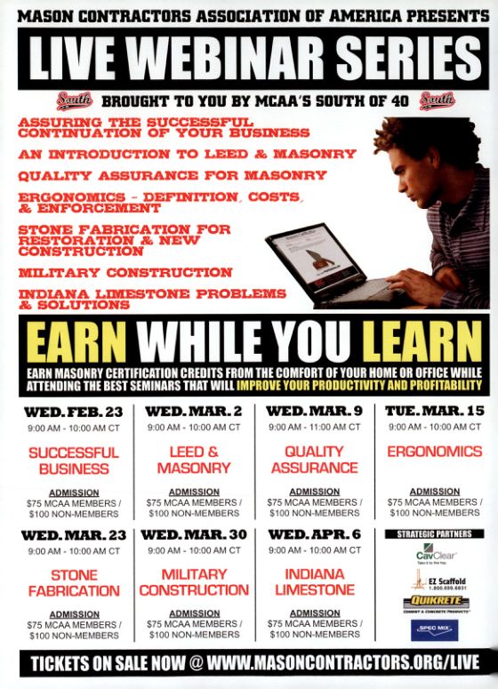 EARN MASONRY CERTIFICATION CREDITS FROM THE COMFORT OF YOUR HOME OR OFFICE WHILE ATTENDING THE BEST SEMINARS THAT WILL IMPROVE YOUR PRODUCTIVITY AND PROFITABILITY