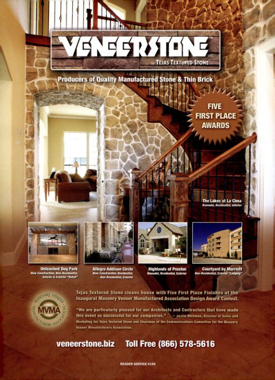 Tejas Textured Stone cleans house with Five First Place Finishes at the Inaugural Masonry Veneer Manufactured Association Design Award Contest.