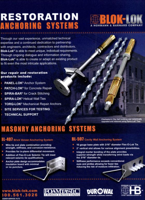 * Integral mortar bonding of the plate provides superior strength while transferring wind loads via the 3/16" diameter tie.