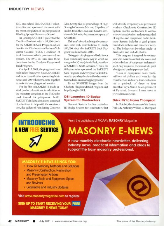 Visit www.masonrymagazine.com to register and sign up to start receiving your free MASONRY E-NEWS TODAY.