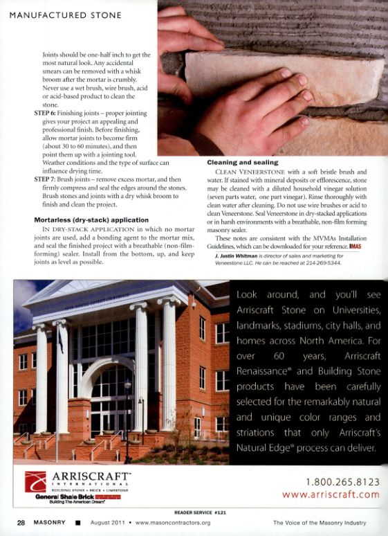 These notes are consistent with the MVMAs Installation Guidelines, which can be downloaded for your reference. IMAS J. Justin Whitman is director of sales and marketing for Veneestone LLC. He can be reached at 214-269-5344.