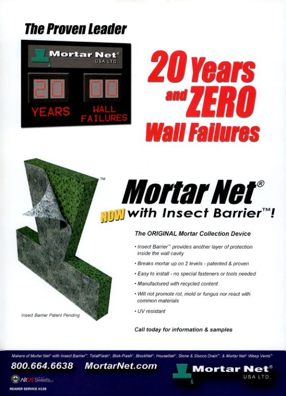 Makers of Mortar Net with Insect Barrier, TotalFlash, Blok-Flash, BlockNet, HouseNet, Stone & Stucco Drain", & Mortar Net Weep Vents™