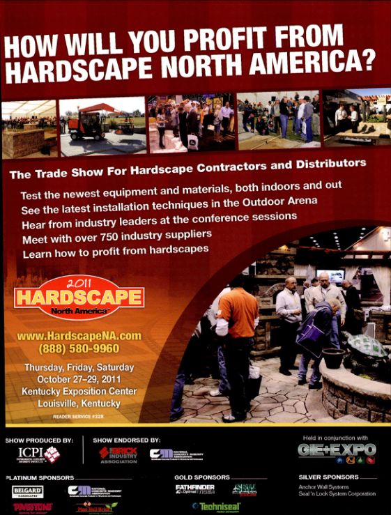 The Trade Show For Hardscape Contractors and Distributors. Test the newest equipment and materials, both indoors and out. See the latest installation techniques in the Outdoor Arena. Hear from industry leaders at the conference sessions. Meet with over 750 industry suppliers. Learn how to profit from hardscapes.