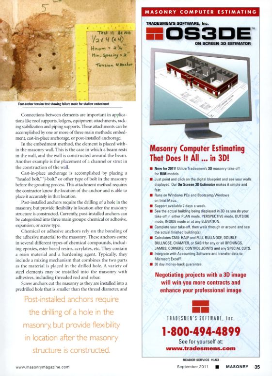 New for 2011! Utilize Tradesmen's 30 masonry take-off for BIM models.