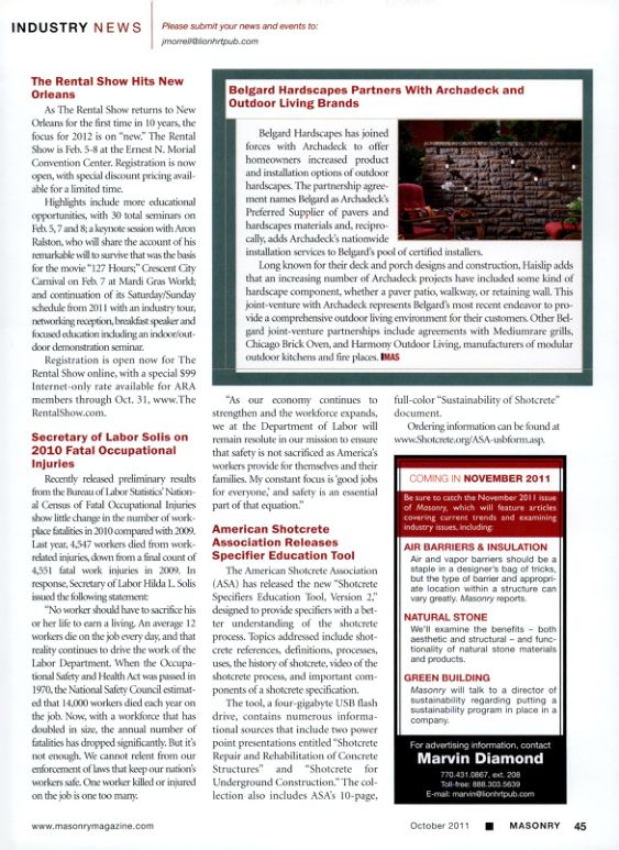 Be sure to catch the November 2011 issue of Masonry, which will feature articles covering current trends and examining industry issues, including: