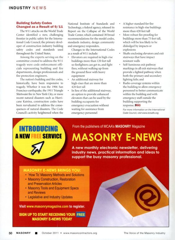 A new monthly electronic newsletter, delivering industry news, practical information and ideas to support the busy masonry professional. MASONRY E-NEWS BRINGS YOU: