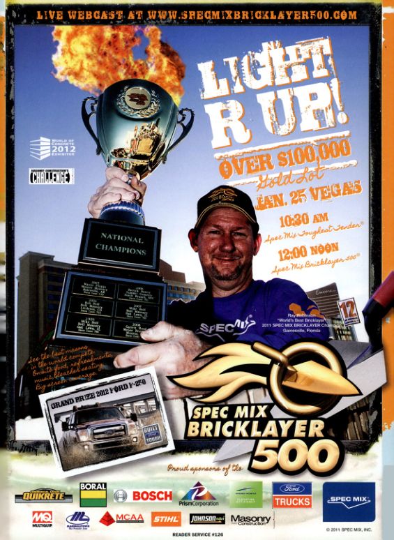 Ray Rebinson Eweore "World's Best Bricklayer 2011 SPEC MIX BRICKLAYER Chan Gainesville, Florida 12