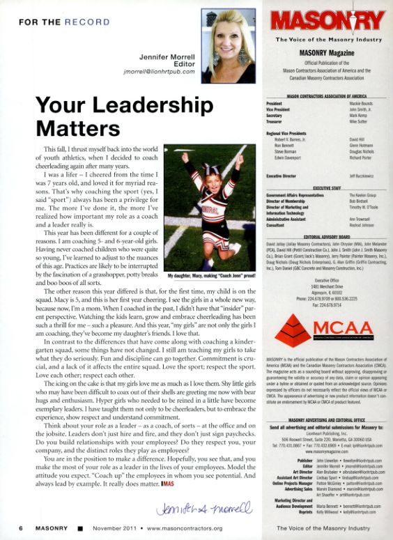 I was a lifer I cheered from the time I was 7 years old, and loved it for myriad reasons. That's why coaching the sport (yes, I said "sport") always has been a privilege for me. The more I've done it, the more I've realized how important my role as a coach and a leader really is.
