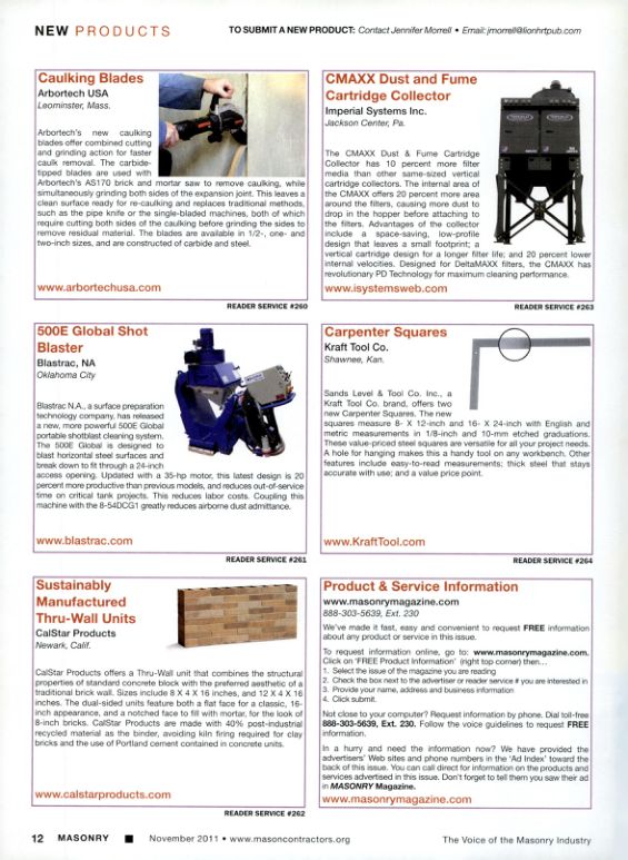 In a hurry and need the information now? We have provided the advertisers' Web sites and phone numbers in the 'Ad Index' toward the back of this issue. You can call direct for information on the products and services advertised in this issue. Don't forget to tell them you saw their ad in MASONRY Magazine.