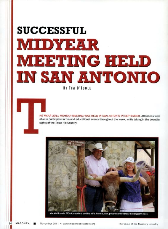 The MCAA 201 2011 Midyear Meeting was held in San Antonio in September. Attendees were able to participate in fun and educational events throughout the week, while taking in the beautiful sights of the Texas Hill Country.