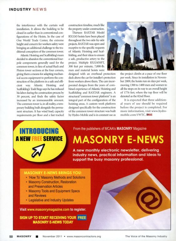 A new monthly electronic newsletter, delivering industry news, practical information, and ideas to support the busy masonry professional.