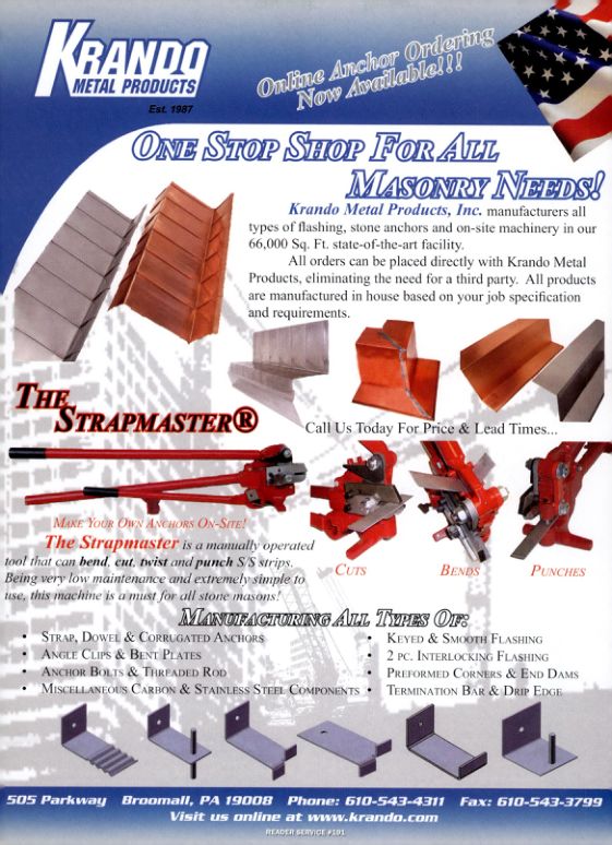 Krando Metal Products, Inc. manufacturers all types of flashing, stone anchors and on-site machinery in our 66,000 Sq. Ft. state-of-the-art facility.