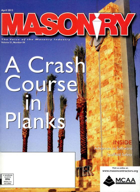 Masonry Magazine April 2012 Page. 1 Masonry Magazine April 2012 Page. 1 April 2012MASONRYThe Voice of the Masonry IndustryVolume 51, Number 04A Crash Course in PlanksINSIDEAdvances in SoftwareScaffold SafetyVisit us online at: www.masoncontractors.orgMCAA