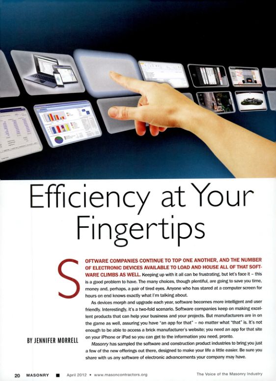 Masonry has sampled the software and construction product industries to bring you just a few of the new offerings out there, designed to make your life a little easier. Be sure you share with us any software of electronic advancements your company may have.