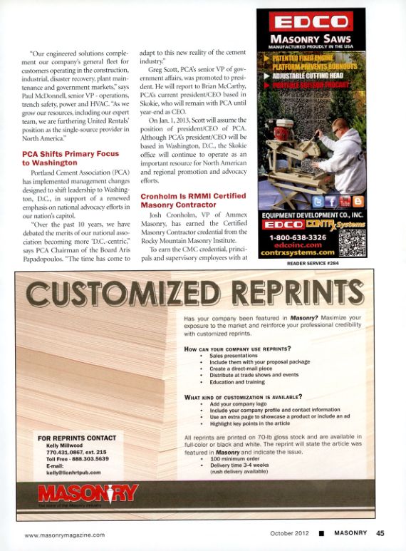 Has your company been featured in Masonry? Maximize your exposure to the market and reinforce your professional credibility with customized reprints.