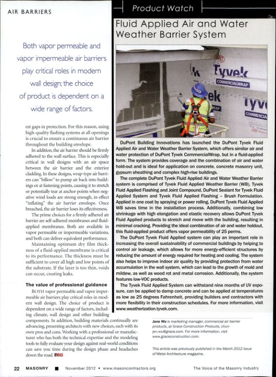 Jane Wu is marketing manager, commercial air barrier products, at Grace Construction Products, chun jen.wu@grace.com. For more information, visit www.graceconstruction.com.
